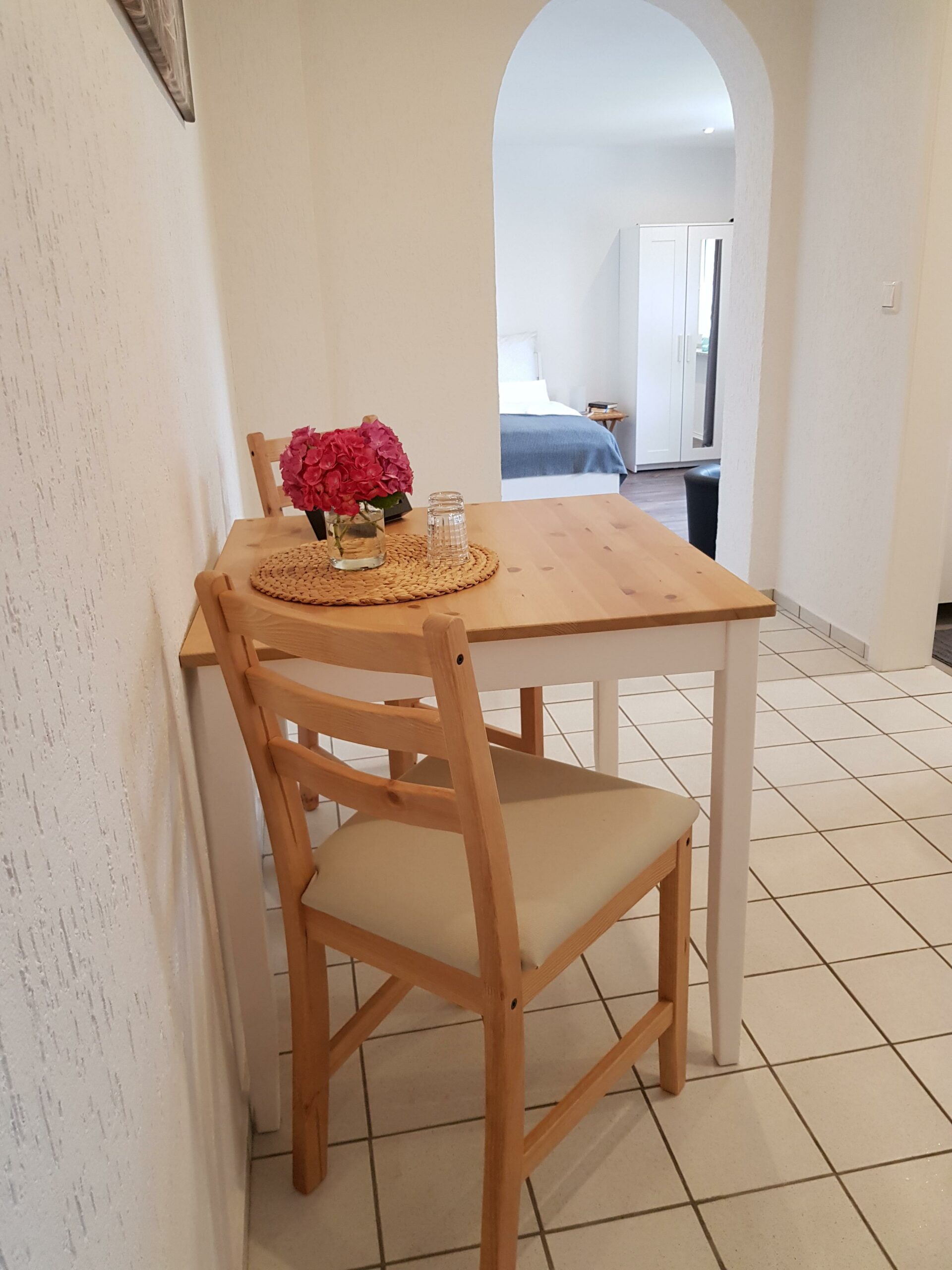 Das 34 qm kleine aber feine Ferienappartement Jung begrüßt Sie in Kamp-Lintfort. In der frisch renovierten Unterkunft finden Sie einen Sat-TV, WLAN und eine eingerichtete Küchenzeile. Gerne können Sie sich mit der Pad-Kaffeemaschine Ihren Kaffee frisch kochen. Wasserkocher und Minibackofen stehen für Sie bereit. Ein Kühlschrank mit Gefrierfach ist vorhanden. Als Willkommensgruß werden eine Flasche Wasser, sowie Kaffeepads und Teebeutel zur Verfügung gestellt.