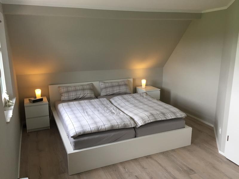 Im oberen Bereich befinden sich 2 Schlafzimmer, davon eines mit einem Doppelbett und das andere mit einem ausziehbaren Bett sowie ein Badezimmer.