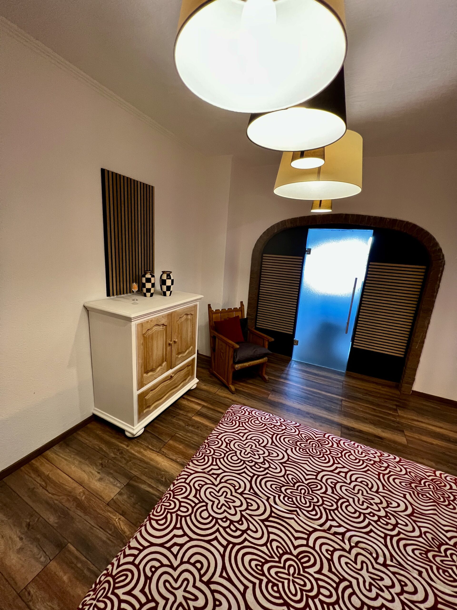 Die 85 Quadratmeter große Ferienwohnung "Am Stephanswäldchen" verfügt über zwei Schlafzimmer, eine komplett eingerichtete Küche mit Ceranfeld, integrierten Backofen und Mikrowelle, Kühlschrank mit Gefrierfach und einer Spülmaschine. Alle Geräte wie zum Beispiel Kaffeemachine, PAD-Maschine, Toaster und Wasserkocher stehen zur Verfügung.