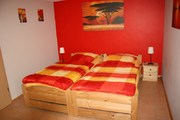 Die 80 m² große Ferienwohnung wird über einen separaten Eingang erreicht und ist ausgestattet mit einer großen Wohnküche sowie 2 Schlafzimmern mit 5 Einzelbetten.
