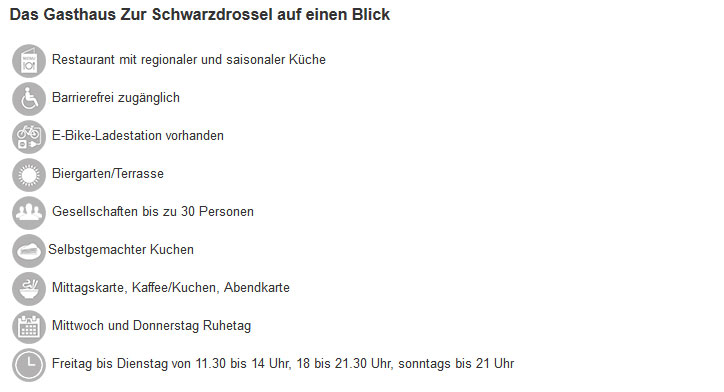 So liebevoll wie hier die Speisekarte zusammengestellt wird, genauso aufmerksam widmet man sich in der Schwarzdrossel den Gästen. Gerne melden sich deshalb Festgesellschaften zu Taufe, Kommunion und Konfirmation, anlässlich einer Weihnachtsfeier oder eines Jubiläums an. Auch wer mit einer größeren Radfahr- oder Wandergruppe die Schwarzdrossel als Zwischenstopp einplant, ist herzlich eingeladen, kurz vorher anzurufen. Dann kann man sich auf den Ansturm einstellen. Und die gewohnte Güte liefern. Die Ansprache ist persönlich, die familiäre Atmosphäre unverstellt und wertschätzend. „Wir sind darauf bedacht, Qualität in jeder Hinsicht zu wahren. Also setzen wir nicht auf Masse, sondern bleiben lieber klein und fein, so dass wir unsere Gäste mit frisch gemachten Speisen und einer herzlichen, persönlichen Art verwöhnen können“, fasst Sandra Zens zusammen. Das sorgfältig gezapfte Bier, selbstgemachtes Eis, regionale Gerichte und die Freude daran, gute Gastgeber zu sein – das ist es, was das Familien-Team Zens und Stuhldreier immer neu antreibt. In der Schwarzdrossel wird deutlich, dass das Naheliegende oft das Beste ist. Die gefiederte Schwarzdrossel oder Amsel, der Vogel der in Gahlen in Hecken und Büschen zu Hause ist, kommt durchaus ohne schillerndes Federkleid aus und setzt nicht auf vordergründige Effekte. Aber wer einmal ihr Abendlied bewusst gehört oder sich von ihrem Gesang hat wecken lassen, wird dieses so ehrliche und doch so sinnliche Erlebnis nicht so schnell vergessen. Und nicht wieder missen wollen.