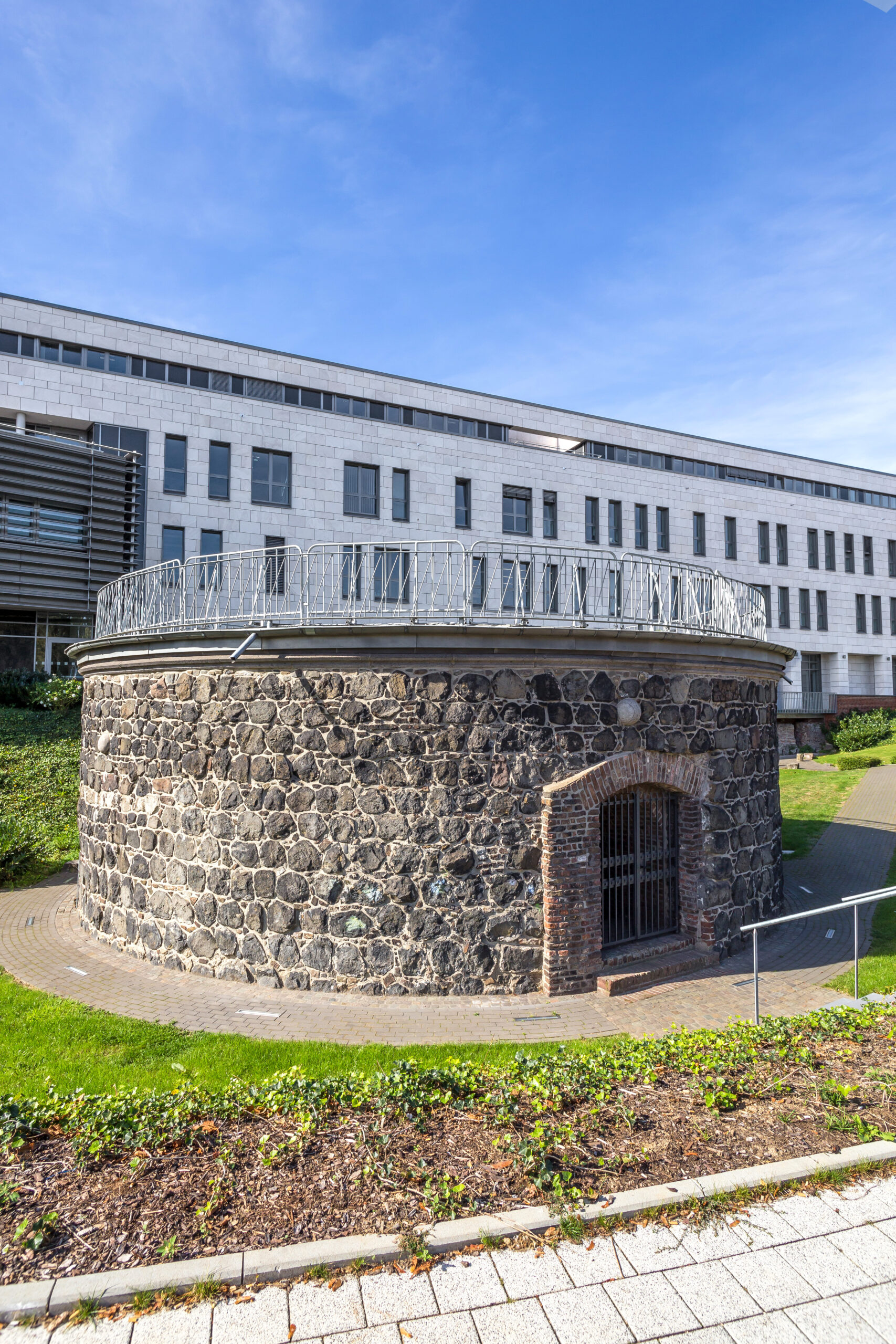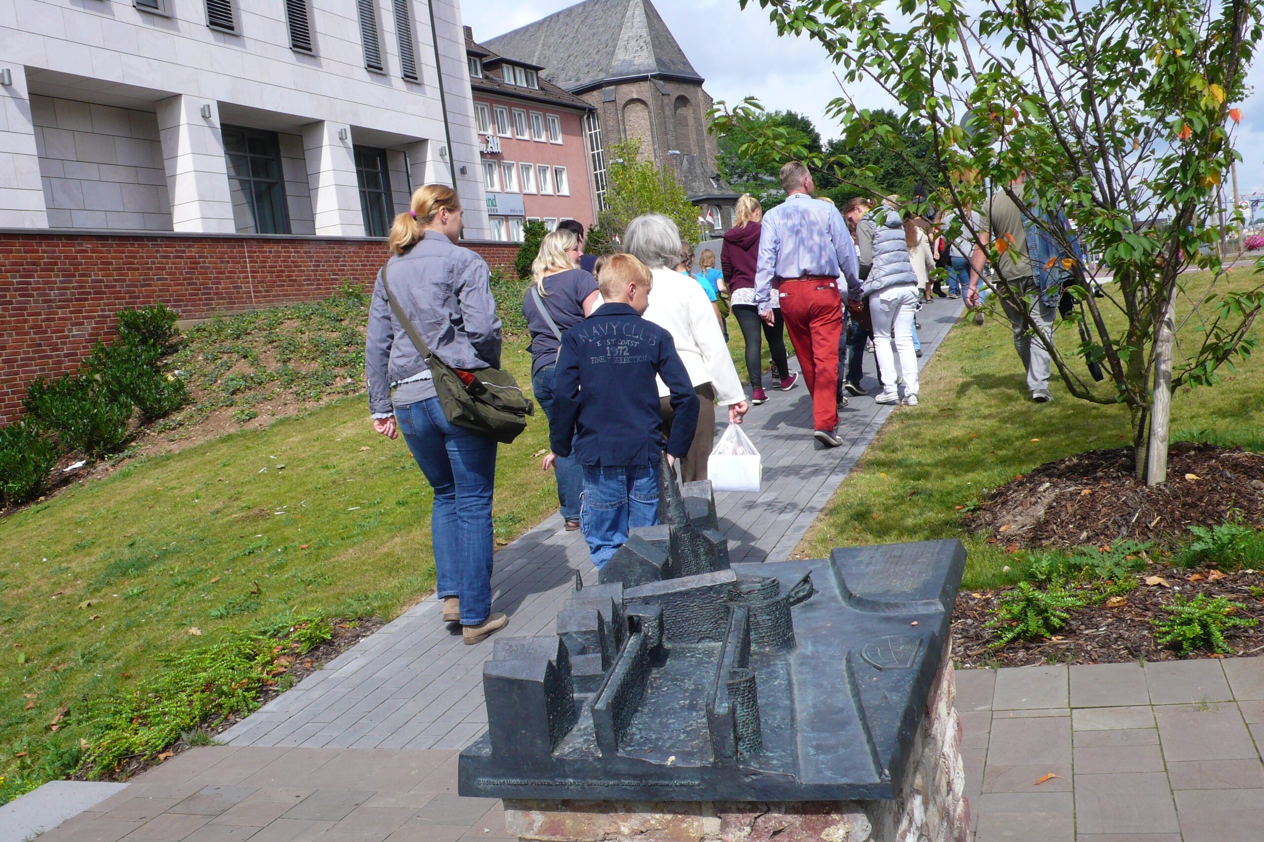 Historische OrteDas Modell - unmittelbar gelegen an den Resten der mittelalterlichen Stadtbefestigung - zeigt das historische Neuss von der Hafenseite her. Der Hafen war und ist einer der wichtigten Wirtschaftsfaktoren der Stadt. Bis ins 17. Jahrhundert wurde hier v. a. Wein umgeschlagen.