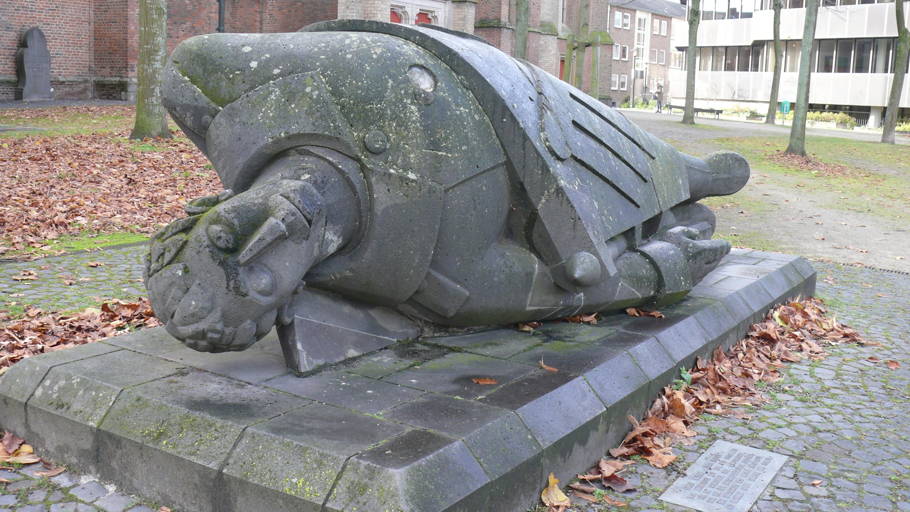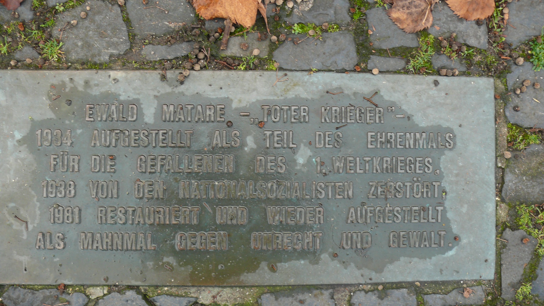 Historische OrteDer Bildhauer Ewald Mataré – der Joseph Beuys 1951 zu seinem Meisterschüler ernannte – schuf dieses Denkmal zum Gedenken an die gefallenen Klever Soldaten. Es wurde von den Nationalsozialisten als entartete Kunst zerstört und vergraben. Erst 1977 fand man Teile der Figur durch Zufall wieder und restaurierte sie.