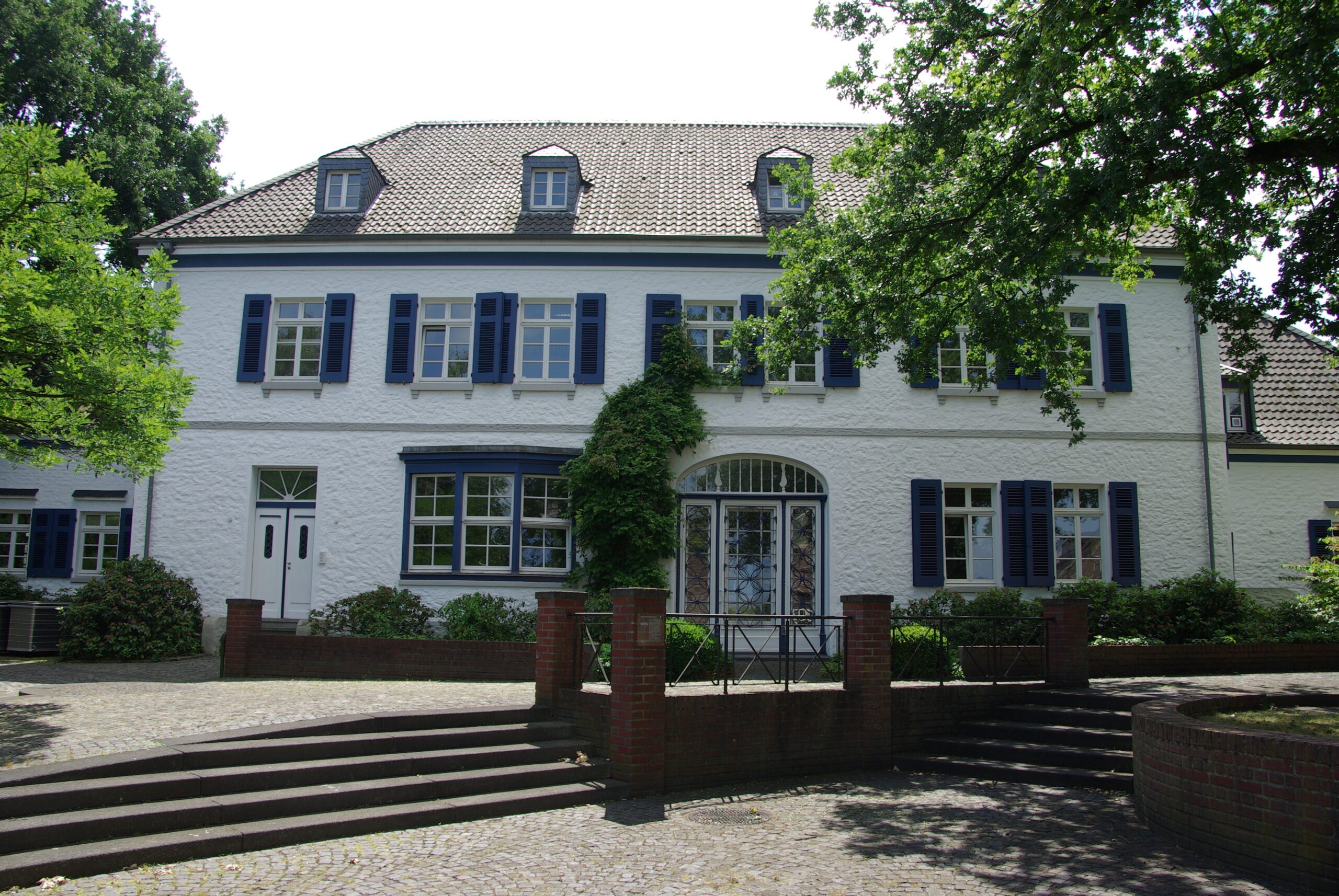 Historische Orte1908 erbautes langgestrecktes, zweigeschossiges, verputztes Herrenhaus der Firma Deuß und Oetker Seidenweberei (Betriebsaufnahme 9. 3. 1909), später Unternehmen der Vereinigten Seidenwebereien Krefeld. Bis zur Aufgabe des Betriebsstandorts 1967 war die „Verseidag“ größter Arbeitgeber am Ort mit bis zu 300 Beschäftigten. Danach wurde das Gebäude zur Fabrikation für selbstklebende Erzeugnisse genutzt. Die Fabrikationsgebäude selbst wurden nach Schließung auch dieses Betriebes im Zuge der Ortskern -erneuerung 1988 abgerissen. Das städtebaulich dominante Herrenhaus mit dem markantenkorbbogigen Eingang und der Originaltür steht unter Denkmalschutz. An dieser Stelle befand sich früher das Burgtor mit Durchgang durch die Stadtmauer zum befestigten Burgplatz.