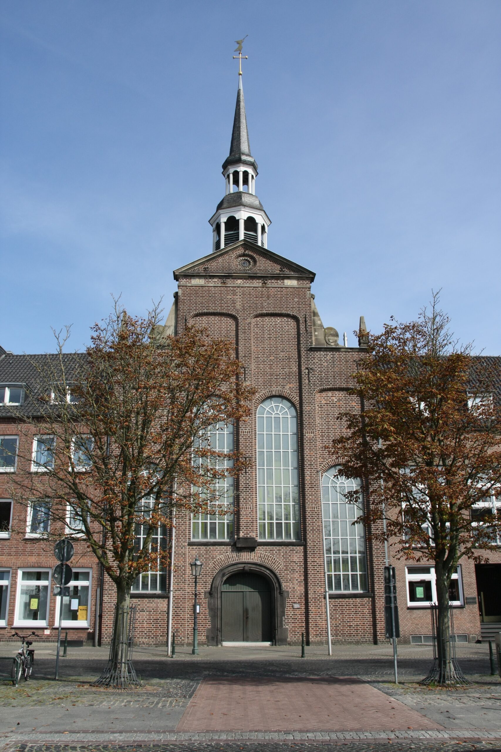 Kirchen & KlösterSeit Anfang Mai 1701 feierte die Gemeinde nach umfangreichen Umbauarbeiten dort ihren Gottesdienst. 1889 erhielt die Kirche einen Neo-Barockverputz. Doch im Jahre 1942 – Goch feierte sein 700-jähriges Jubiläum – wurde der Verputz wieder abgeschlagen und die Front bekam wieder eine Backsteinverkleidung. Am 7. Februar 1945 wurde die Kirche durch Fliegerbomben zerstört, und allein die Außenmauern blieben stehen. Erst 1948 – also drei Jahre nach Kriegsende – begann man mit dem Wiederaufbau der Kirche (bis 1951). Der Dachreiter mit dem Geusen-Daniel wurde 1958 aufgerichtet und die drei Glocken aus Bronze wurden 1957 gegossen. Die jetzige weiße Farbe bekam das Kirchengebäude 1972/1973. Die Tonnendecke wurde 1997 restauriert. (Quelle Wikipedia)