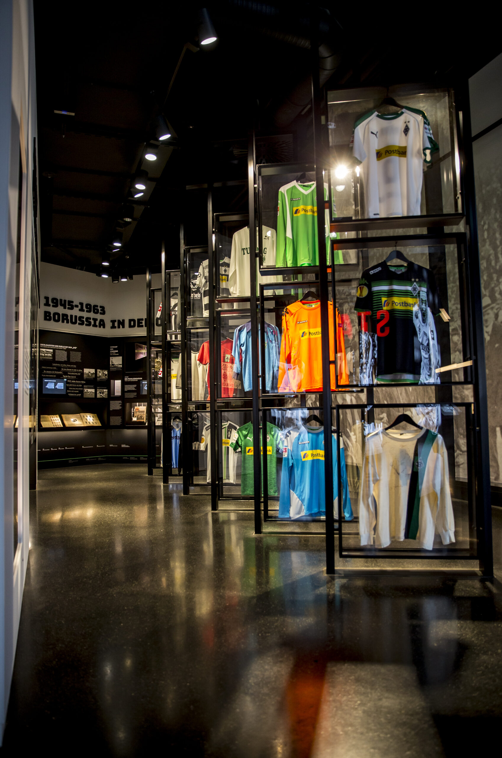 Borussia Mönchengladbach blickt auf eine bewegte Historie. In der FohlenWelt wird diese Geschichte mit allen Sinnen erlebbar. Auf einer Fläche von 1.150 Quadratmetern können die Besucher in der interaktiven Erlebniswelt in Borussias Historie von 1900 bis heute eintauchen und sich begeistern lassen.