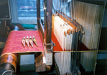 An original Holz-Jaquard-Handwebstühlen demonstrieren Weber die komplizierte Jaquard- und Samtweberei. Das Haus der Seidenkultur repräsentiert eindrucksvoll und mit Liebe zum Detail ein Stück lebendige Textilgeschichte Krefelds.