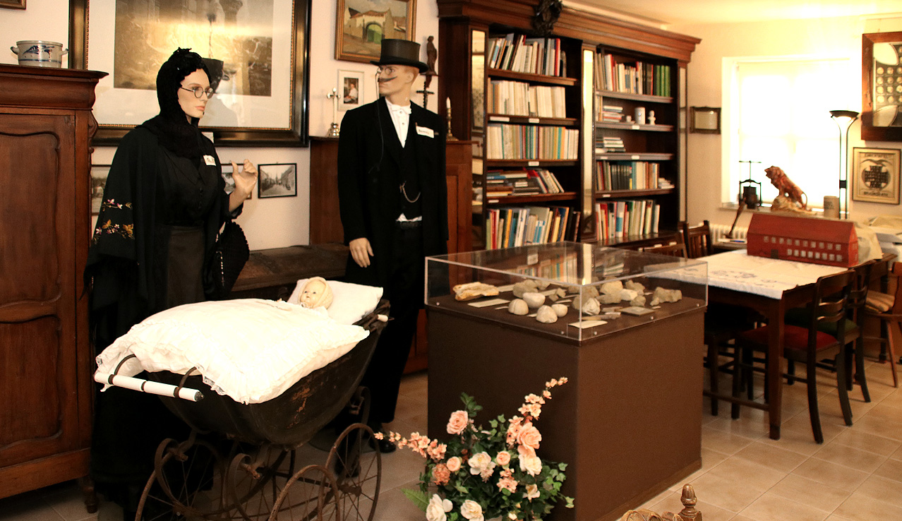 Gezeigt wird eine Vielfalt an Ausstellungstücken von Fossilien, steinzeitlichen Funden bis zu den Alltagsgegenständen und der Möblierung von Häusern aus dem 19. Jahrhundert. Auch sind Teile der Bildhauerwerkstatt Wolks sowie einige Figuren des Künstlers zusehen.