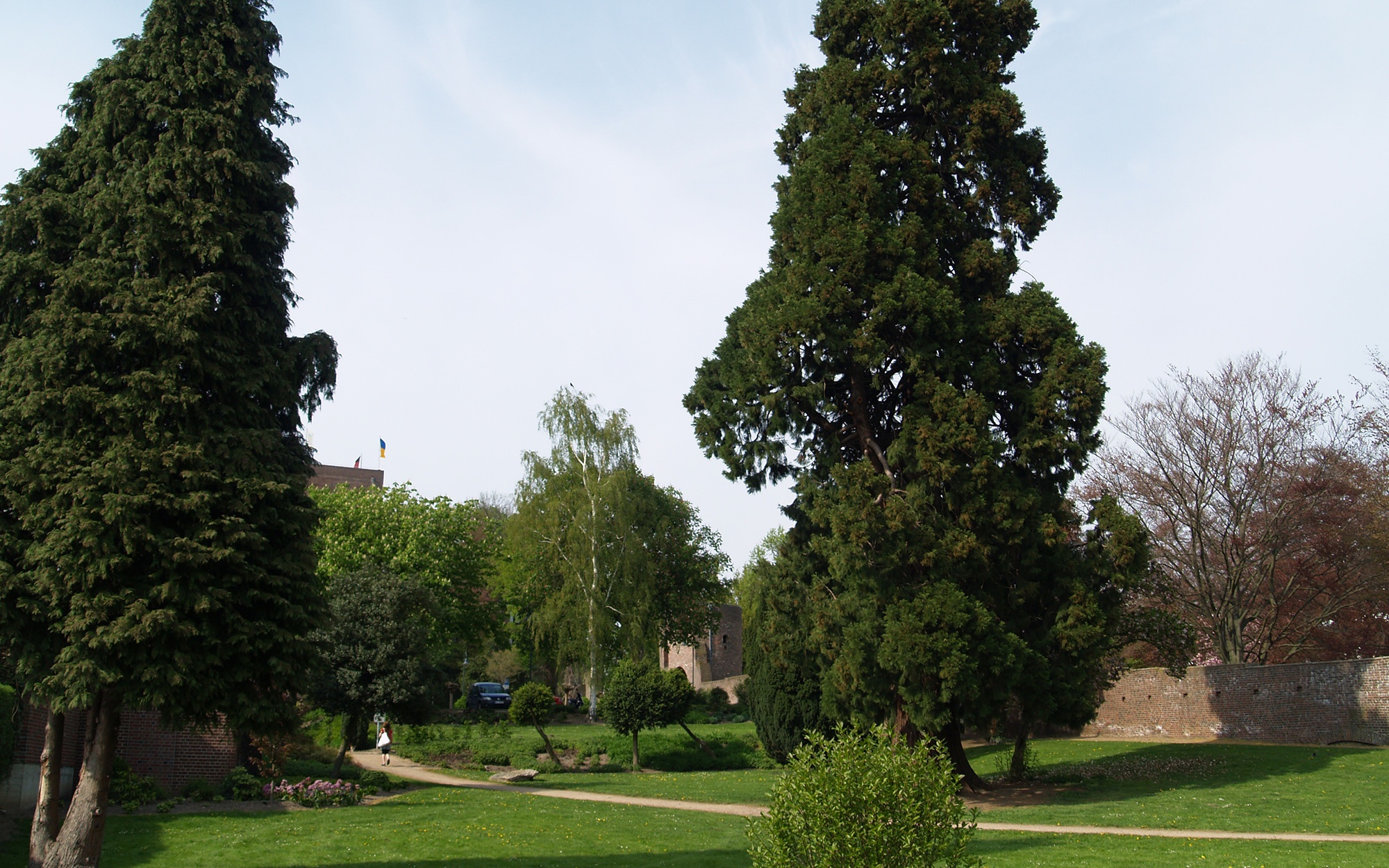 Südlich der Burg sind Teile der alten Stadtbefestigungen in Form von Mauerstücken und Wehrtürmen erhalten. Sie liegen malerisch in Parkanlagen mit reichhaltigem Baumbestand. Herauszuheben sind hier ein Mammutbaum und der Wassenberger Sämling, eine spezielle, hier gezüchtete Form eines Pfirsiches.