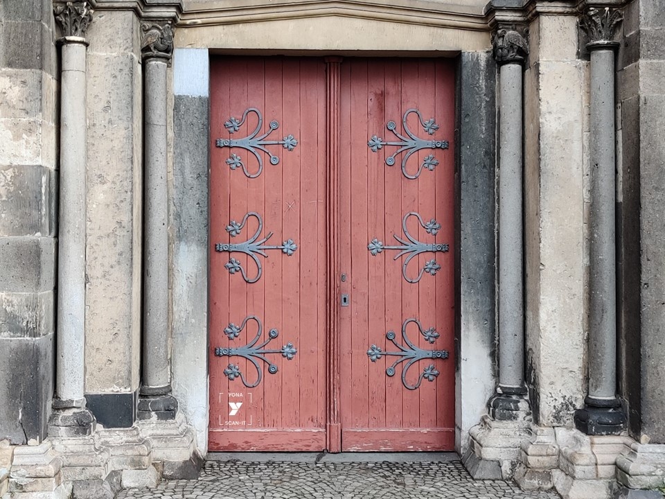 Das Münster St. Vitus, eine romanische Basilika mit gotischer Chorhalle ist weithin sichtbar auf dem Abteiberg gelegen. Der Schriftzug „EXIT“ erinnert bis heute an eine Beuys-Aktion aus dem Jahr 1972. In einer Karfreitags-Aktion, die als „Friedensfeier“ bekannt wird, prangerte Beuys hier vor dem Westportal des Münsters die Institution Kirche an. Eine Kirche, die dem sozialhumanen Anspruch der christlichen Idee nicht gerecht wird. Am Ende einer symbolträchtigen ‚Liturgie im Freien‘ schreibt er mit Kreide das Wort ‚EXIT‘ (Ausgang) an die Tür. Erst zu einem späteren Zeitpunkt wurde es von einem Unbekannten mit einem Messer nachgeritzt.