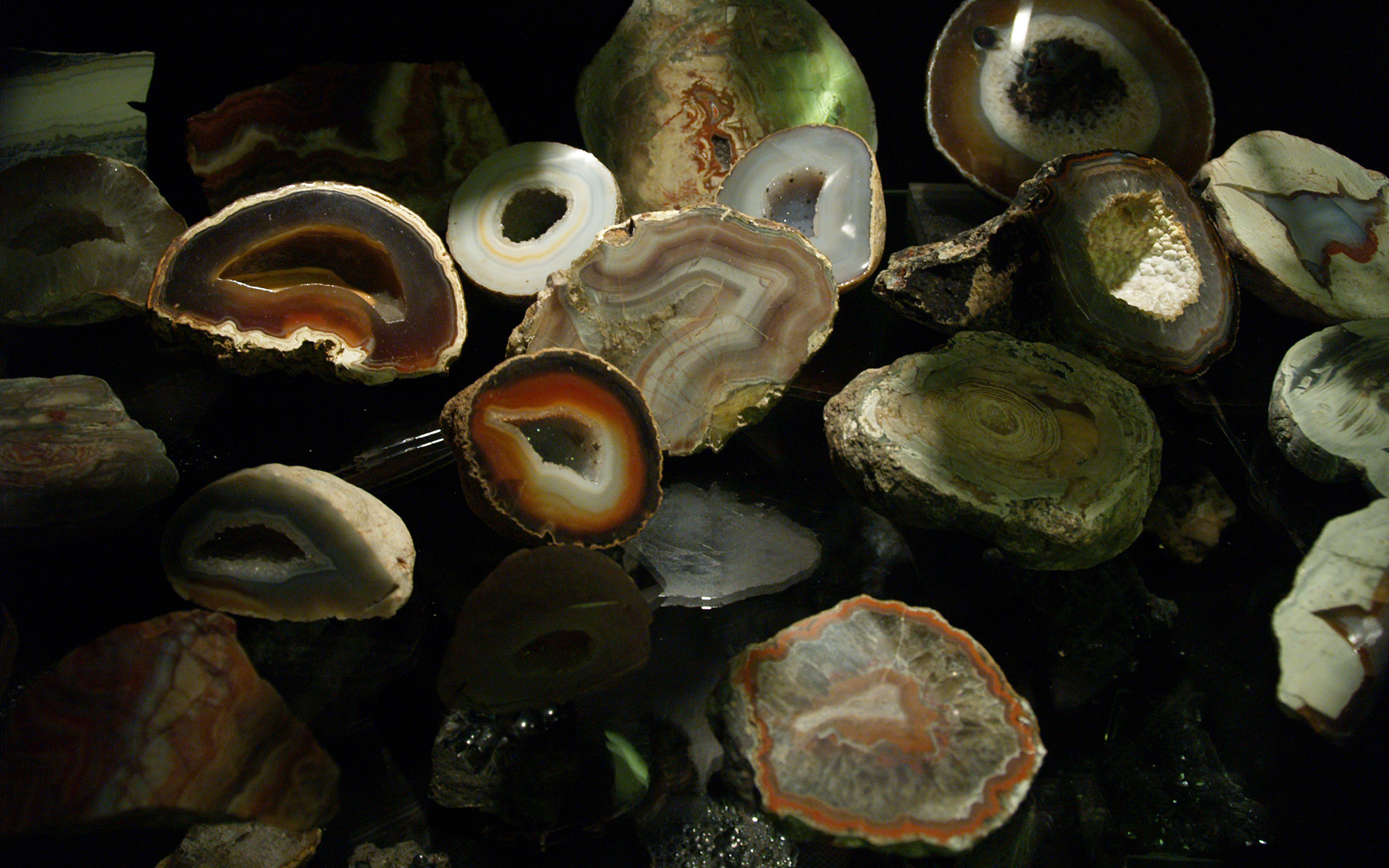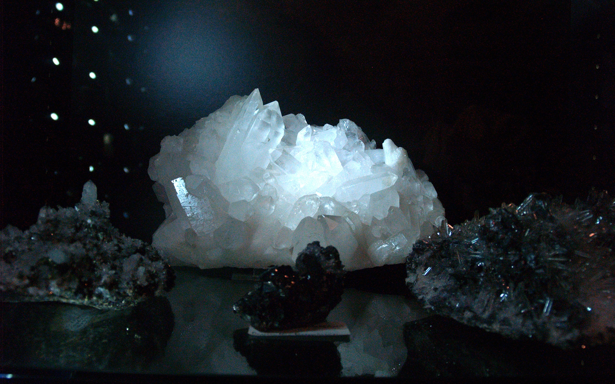 Zu sehen sind aber auch jedoch einige Raritäten wie Millerite, Bergkristalle sowie Pyrite, Dolomite und Zinkblende. Die Mineralien stammen aus den Regionen Idar-Oberstein, Becke-Oese, Velbert und dem Schwarzwald.