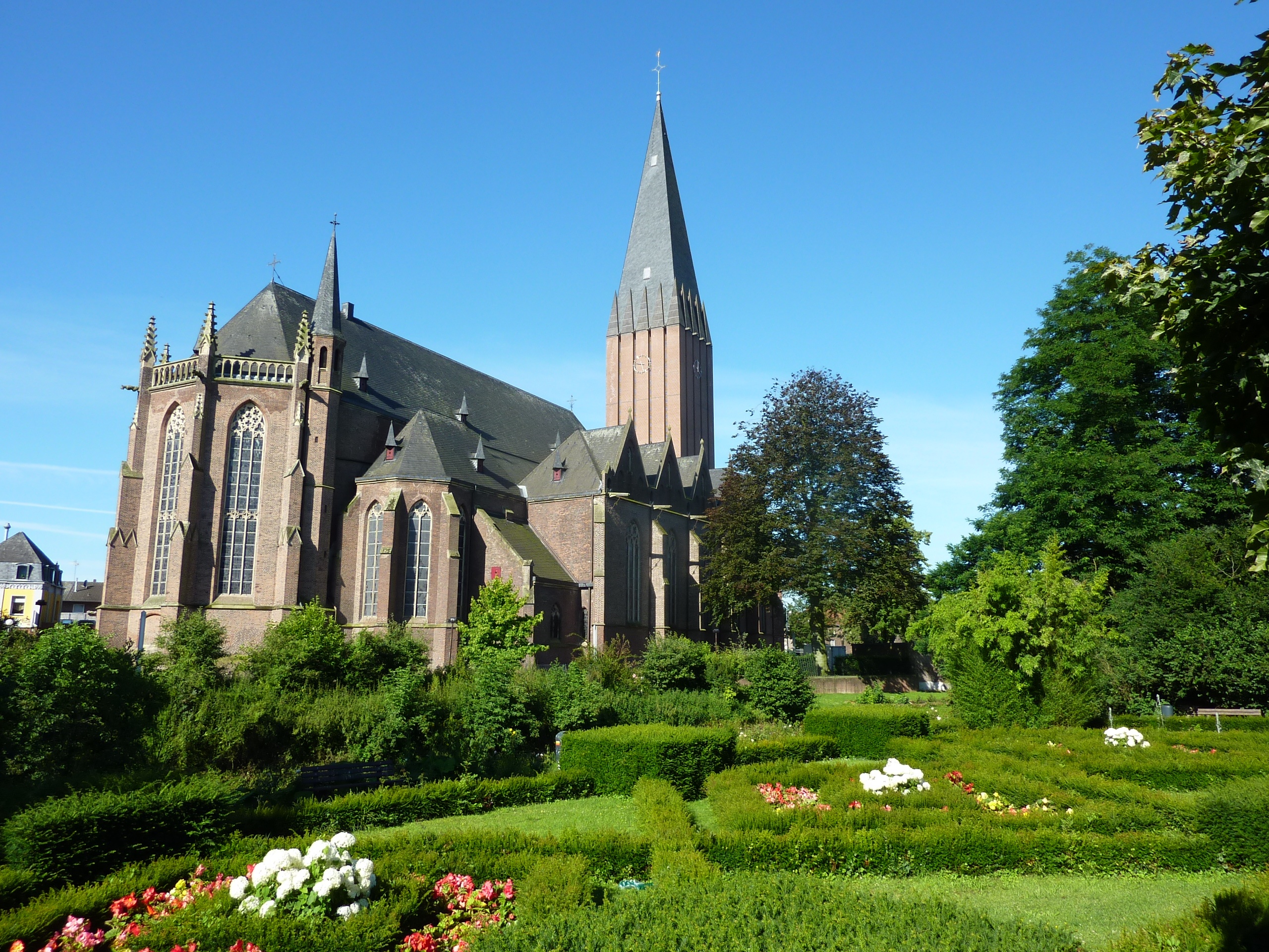 Kirchen & KlösterEs gibt wohl kaum einen Gocher, der nicht weiß, was frühmorgens um 2.27 Uhr am 24. Mai 1993 geschah: Der Kirchturm von St. Maria Magdalena in Goch stürzte ein. Einfach so, ohne Vorwarnung, ohne jemanden zu verletzen. Auch heute noch weiß jeder Betrachter des 2003 zeitgemäß wieder aufgebauten Kirchturms, was mit seinem historischen Vorgänger geschah. Aber nicht nur wegen der dramatischen Geschichte des Kirchturms lohnt sich ein Blick ins dreischiffige Backsteingebäude. Vor dem Mittelschiff in die gerade schließende Westseite eingebaut, überzeugt der fünfstöckige Turm. Charakteristisch für das Innere der Kirche ist der malerische Gegensatz zwischen der zweischiffigen Halle und dem erheblich größeren und höheren Südschiff. Etwa in der 2. Hälfte des 14. Jahrhunderts erfolgte der Neubau des bestehenden Mittelschiffchores. Im Verlauf des 15. Jahrhunderts kam der nahezu völlige Neubau unter Erhaltung des Mittelschiffchores mit der Nordkapelle und Teilen der Ostwand des nördlichen Seitenschiffes hinzu. Der Turm wurde um ein Geschoss aufgestockt. Im frühen16. Jahrhundert war der Kirchenbau dann wohlvollendet.