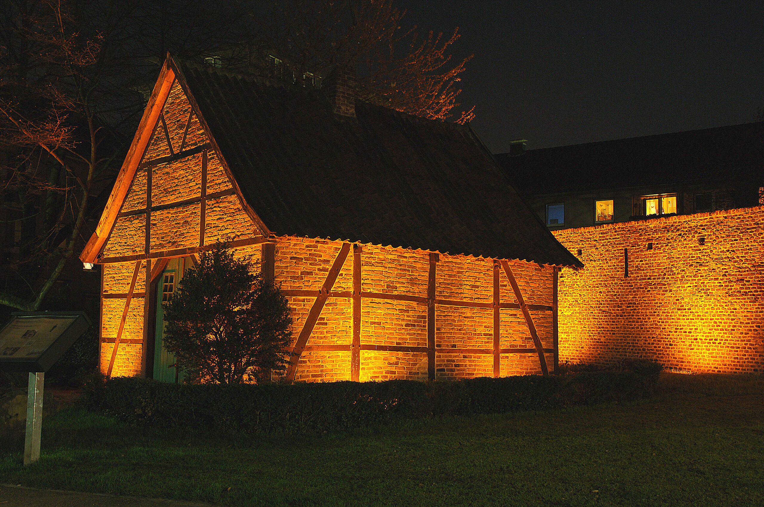Historische OrteNachträglich sind an die Mauer im Abstand von 10 Metern stützende Strebepfeiler stadteinwärts angebracht worden. Ein System aus Gräben und wällen verstärkte die Sicherheit. Der Rotbach umfloss in vielen Armen die Altstadt und trieb am Altmarkt eine Wassermühle an. Auf den Erdwällen und Böschungen der Stadtwälle stellten die Weber und Tuchmacher ihre Rahmen zum Trocknen gefärbter Tuche auf. Im Bereich zwischen Duisburger Straße und Kreuzstraße ist die Stadtmauer am besten erhalten.
