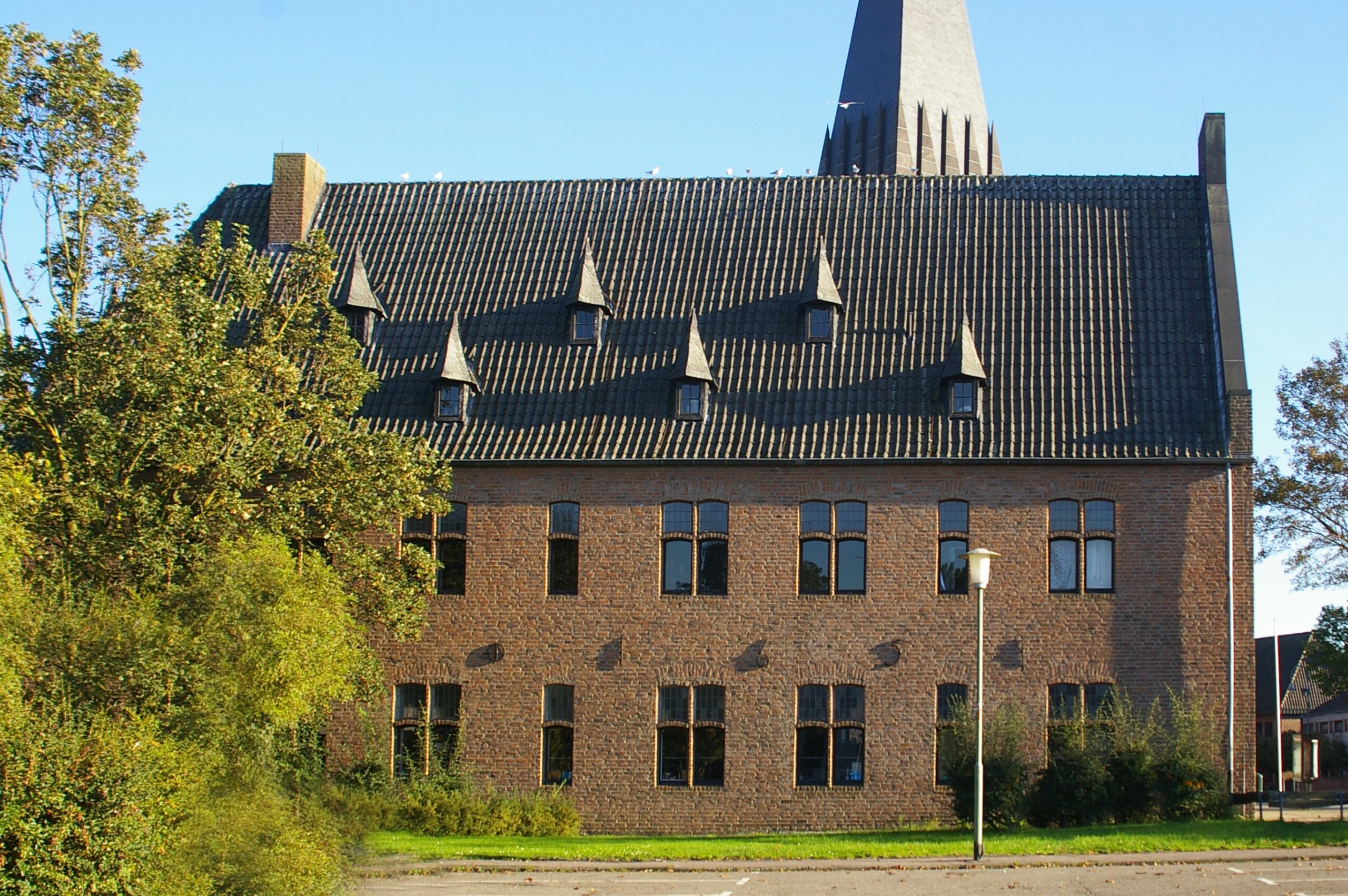 Historische OrteDas ehemalige Tertiarinnenkloster wurde1802 säkularisiert. Die Stiftung des Wilhelm-Anton-Hospitals gründete sich 1849 auf dem Gelände. Im Verlauf des 19. Jahrhunderts wurden die Klosterbaulichkeiten einschließlich der Kirche abgebaut. Einzig ein nach Norden gegen die Niers gerichteter Flügel, dessen Schmalseite sich auf ein Stück der Stadtmauer aufbaut, blieb erhalten. In den zwanzigerJahren des 20. Jahrhunderts folgte ein Umbau dieses Flügels im Inneren unter Beibehaltung und Wiederherstellung des Äußeren. Nach Verlegung und Abbruch des Krankenhauses in den späten sechziger Jahrengab es abermals einen Umbau. Nach den Ankersplinten an der westlichen Längswand stammt der Flügel aus dem Jahre1651. Der zweigeschossige, aus Backsteinerrichtete Bau zeigt in der östlichen Längswand sieben Fensterachsen, in der nördlichen Schmalseite drei. Die nach Osten gerichteten Fenster sind segmentbogig und paarig angeordnet. Die westliche Längsseite scheint bis auf einTreppentürmchen an ihrem südlichen Ende stark erneuert worden zu sein.