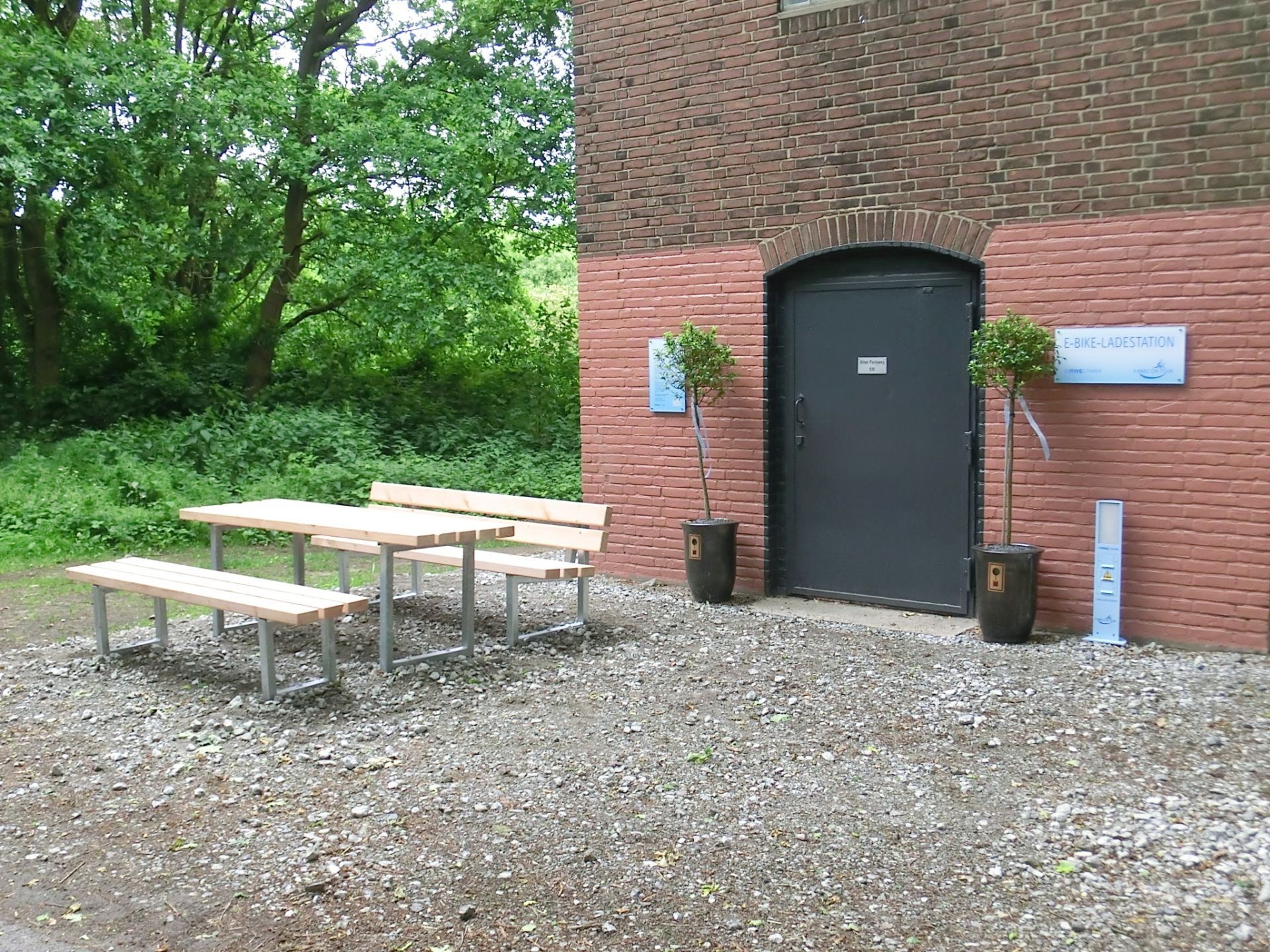Die Turmstation ist mit einer E-Bike Station und einem Rastplatz ausgestattet. Verschiedene Infotafeln vermitteln Wissenswertes über die Turmstation und über Artenschutzmaßnahmen.